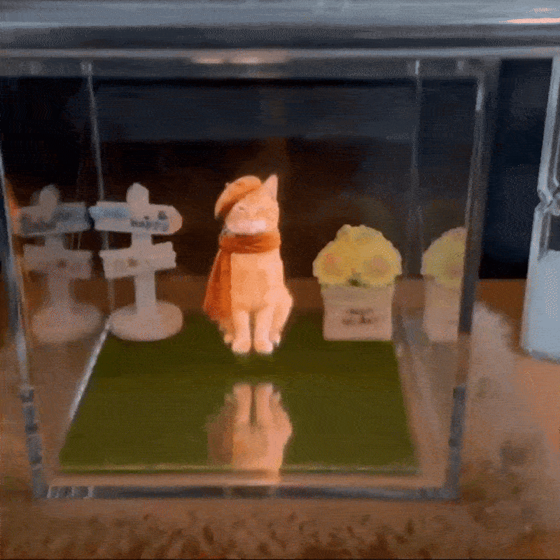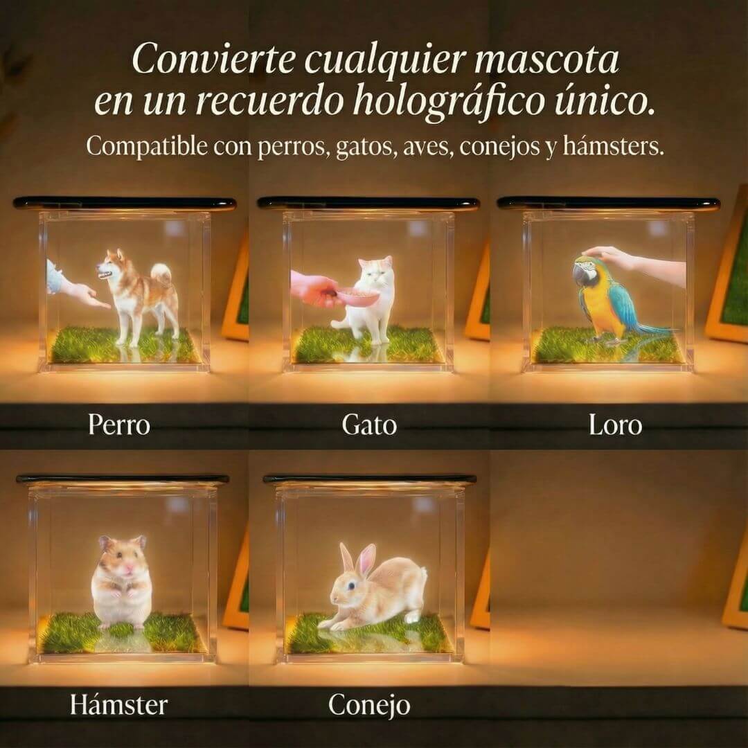 El holograma utiliza la pantalla de tu móvil para proyectar una imagen 3D de tu mascota dentro de la caja. Puedes interactuar con él mediante gestos o toques según el modelo que elijas.
